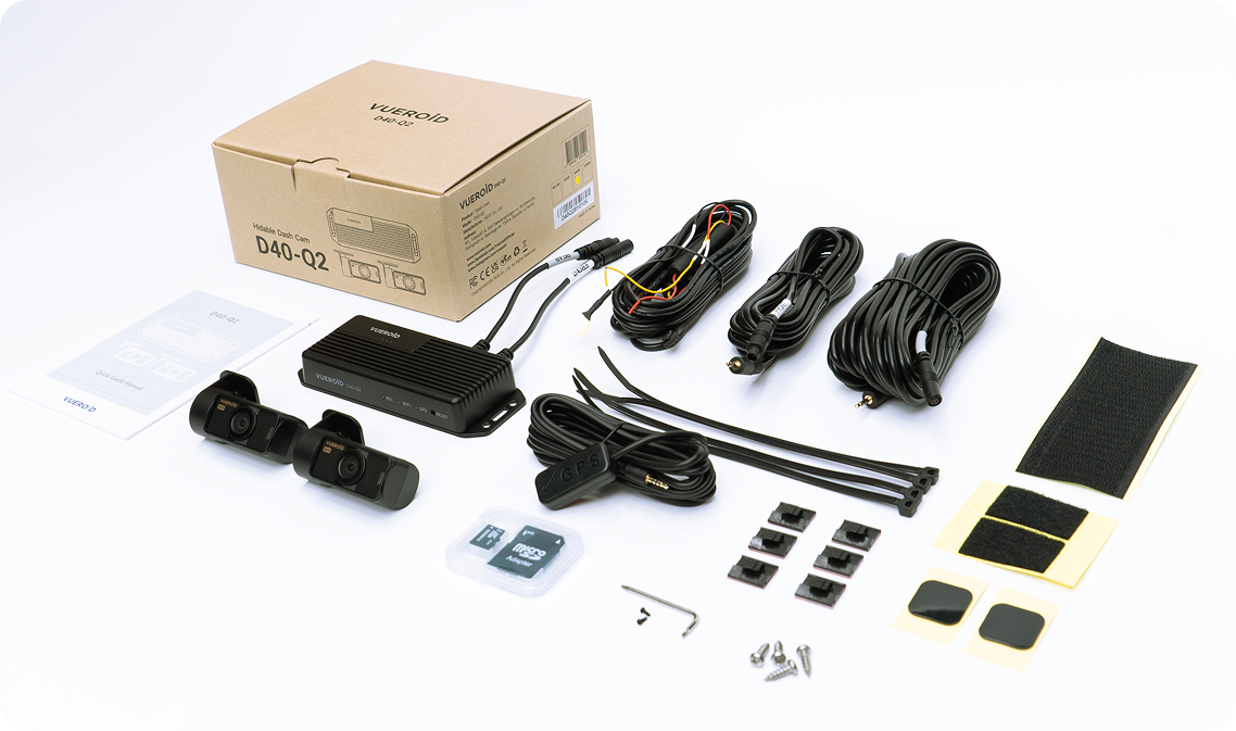 Rendkívül kisméretű kamerák, biztonságos adatvédelem jellemzi a Vueroid D40-Q2-t. A kisméretű kamera az esztétikus megjelenést szolgálja, míg a rejtett központi egység védi a memóriakártyát a szélvédő mögötti hőingadozástól és védi a felvételt az illetéktelen hozzáféréstől.