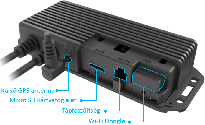 Minden, ami a beépítéshez és a használathoz szükséges. Első és hátsó kamera, központi egység, GPS vevő, a beépítéshez szükséges kábelkészlet és egy 64GB-os Vueroid memóriakártya. Természetesen a szett tartalmazza a magyar nyelvű használati utasítást és a garanciajegyet.